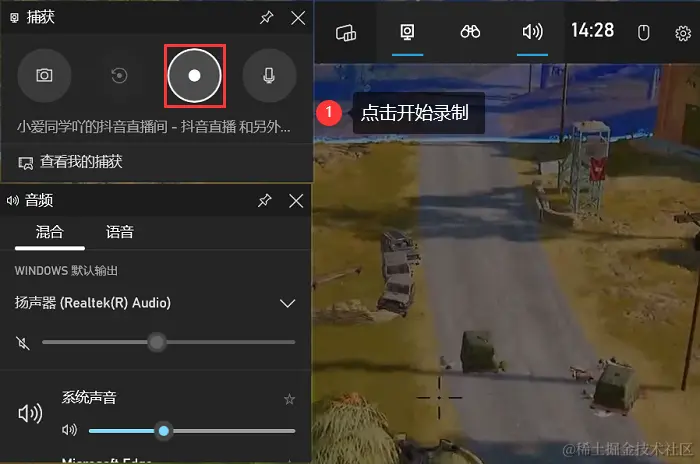 第2步:在Xbox Game Bar中,点击 “录制” 按钮(一个圆形的图标),即可开始录制游戏画面。
