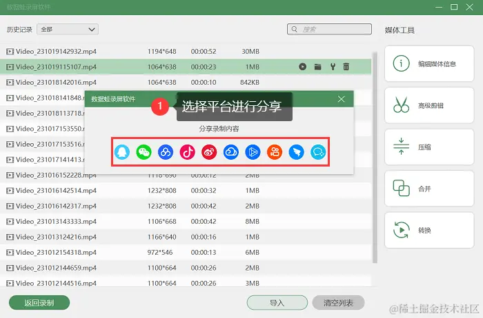 第4步:如果您希望分享到不同的平台,在历史记录页面,鼠标右击您的游戏视频,选择 “分享” ,就可以快速进行分享了。