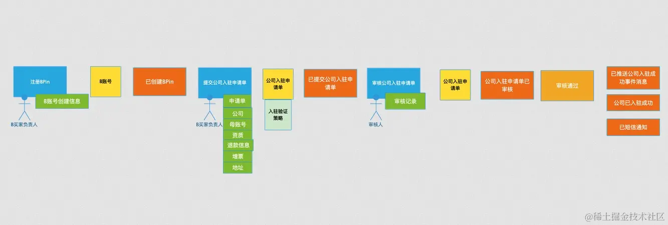 在事件风暴的过程中,领域专家会和设计、开发人员一起建立领域模型,在领域建模的过程中会形成通用的业务术语和用户故事。事件风暴也是一个项目团队统一语言的过程。
