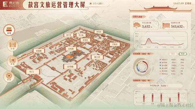 易知微故宫文旅运营管理大屏