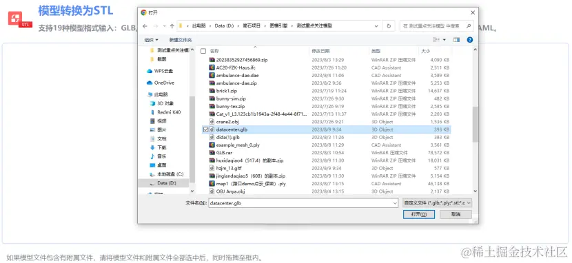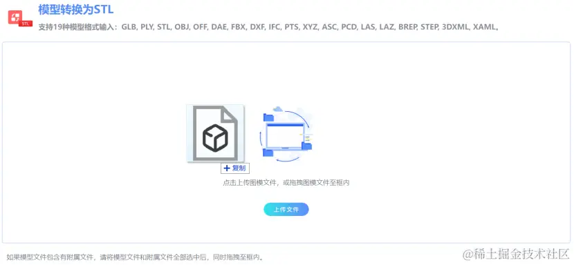 GLB转STL网站也支持通过拖拽的方式,将文件进行上传。在资源管理器中,选择一份或多份模型相关文件,拖拽至GLB转STL网站中的文件接收区域,即可完成3D模型文件的上传。