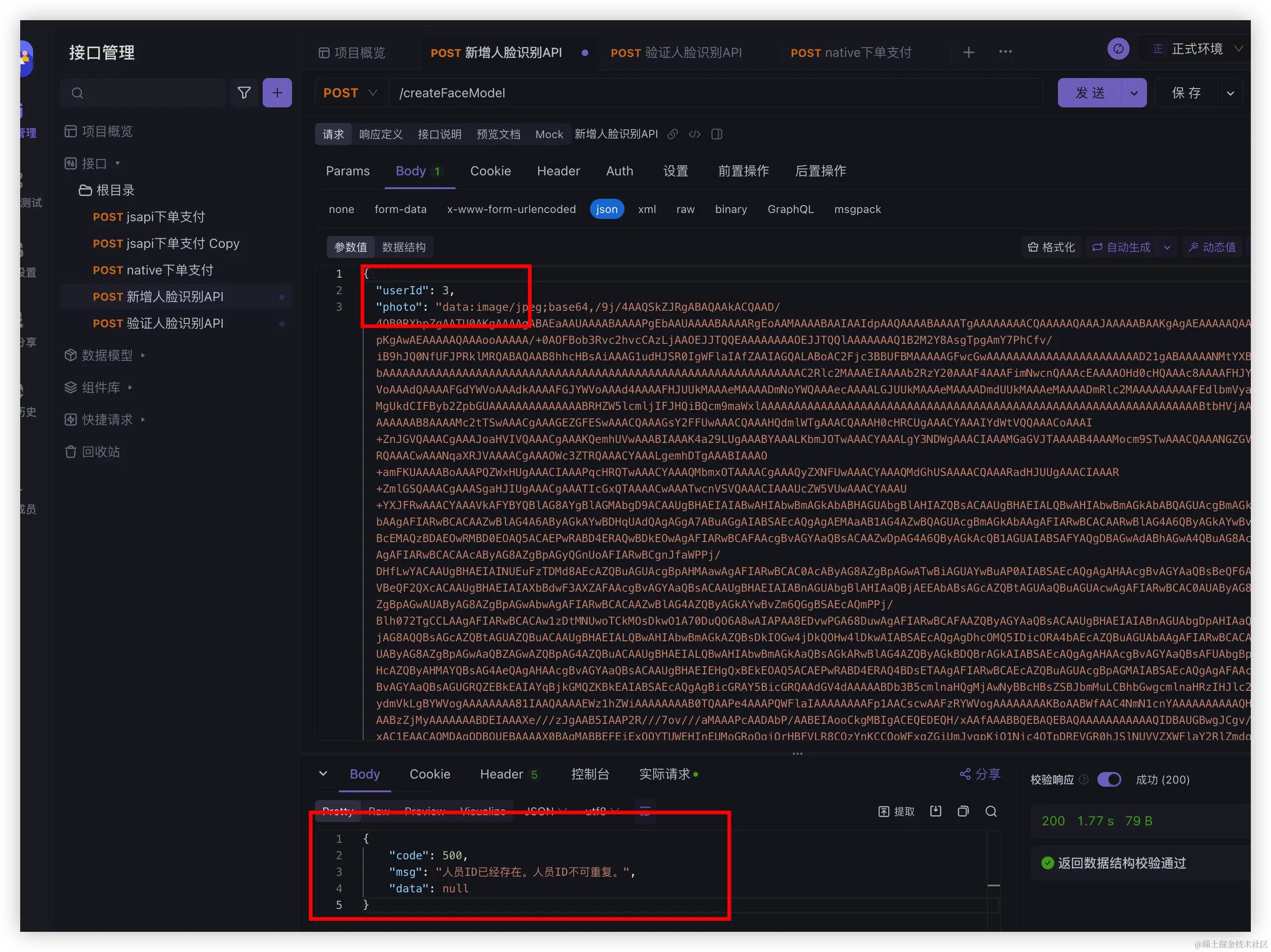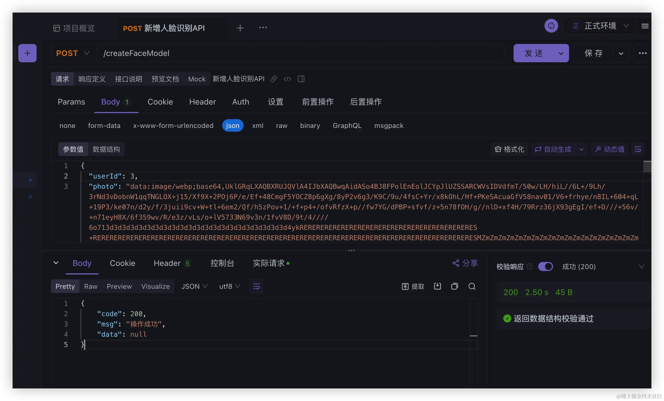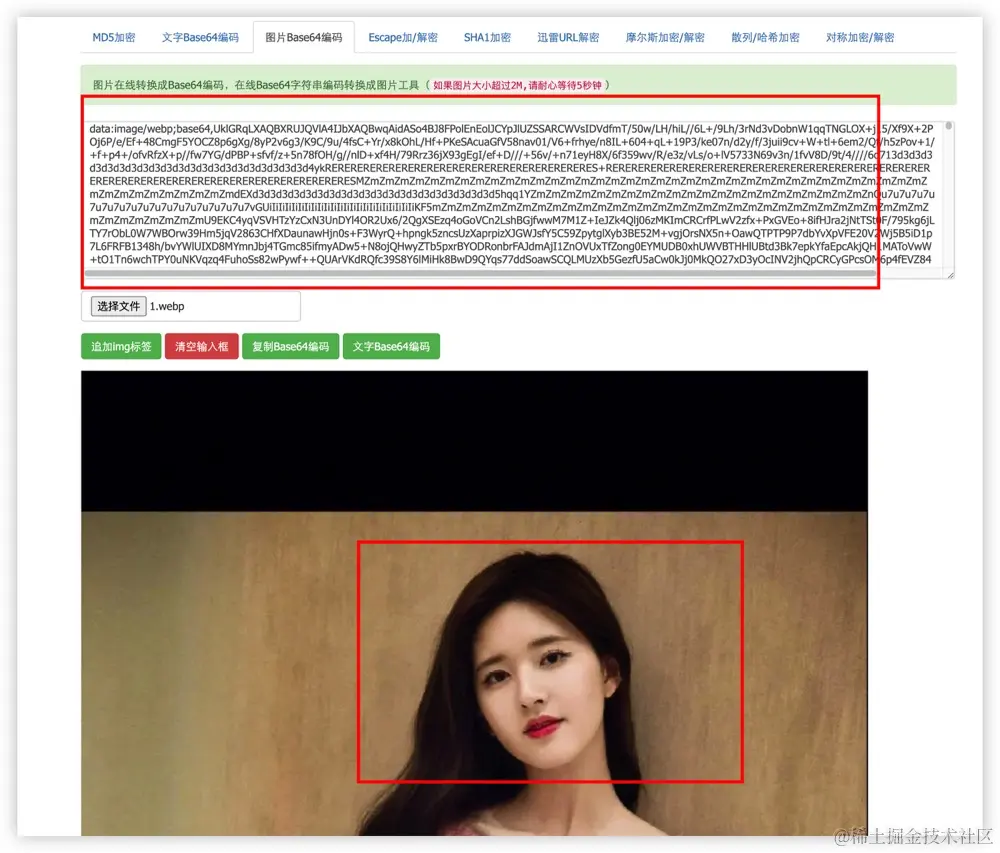 | Image | 否 | String | 图片 base64 数据,base64 编码后大小不可超过5M。 若图片中包含多张人脸,只选取其中人脸面积最大的人脸。 支持PNG、JPG、JPEG、BMP,不支持 GIF 图片。 |