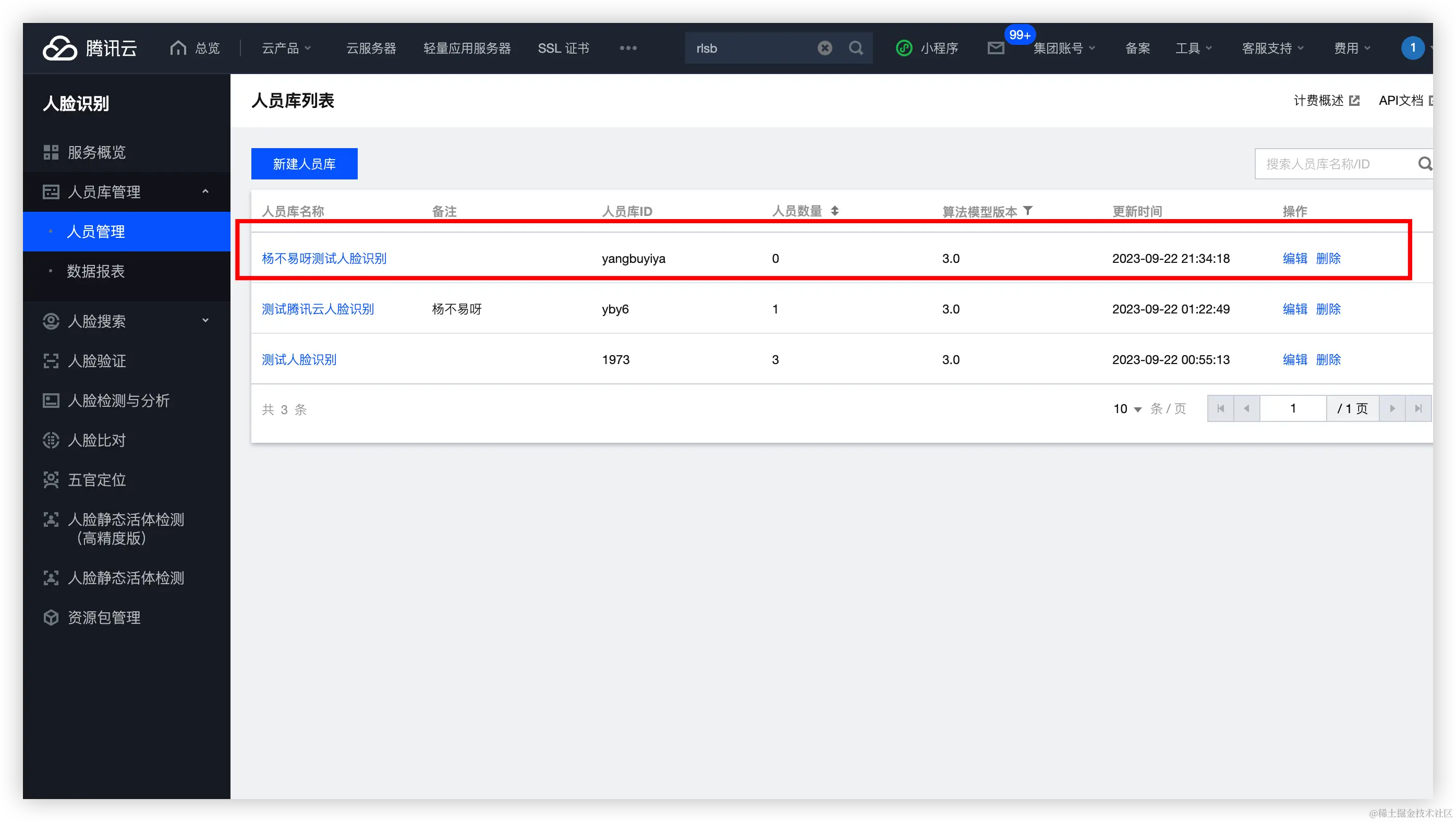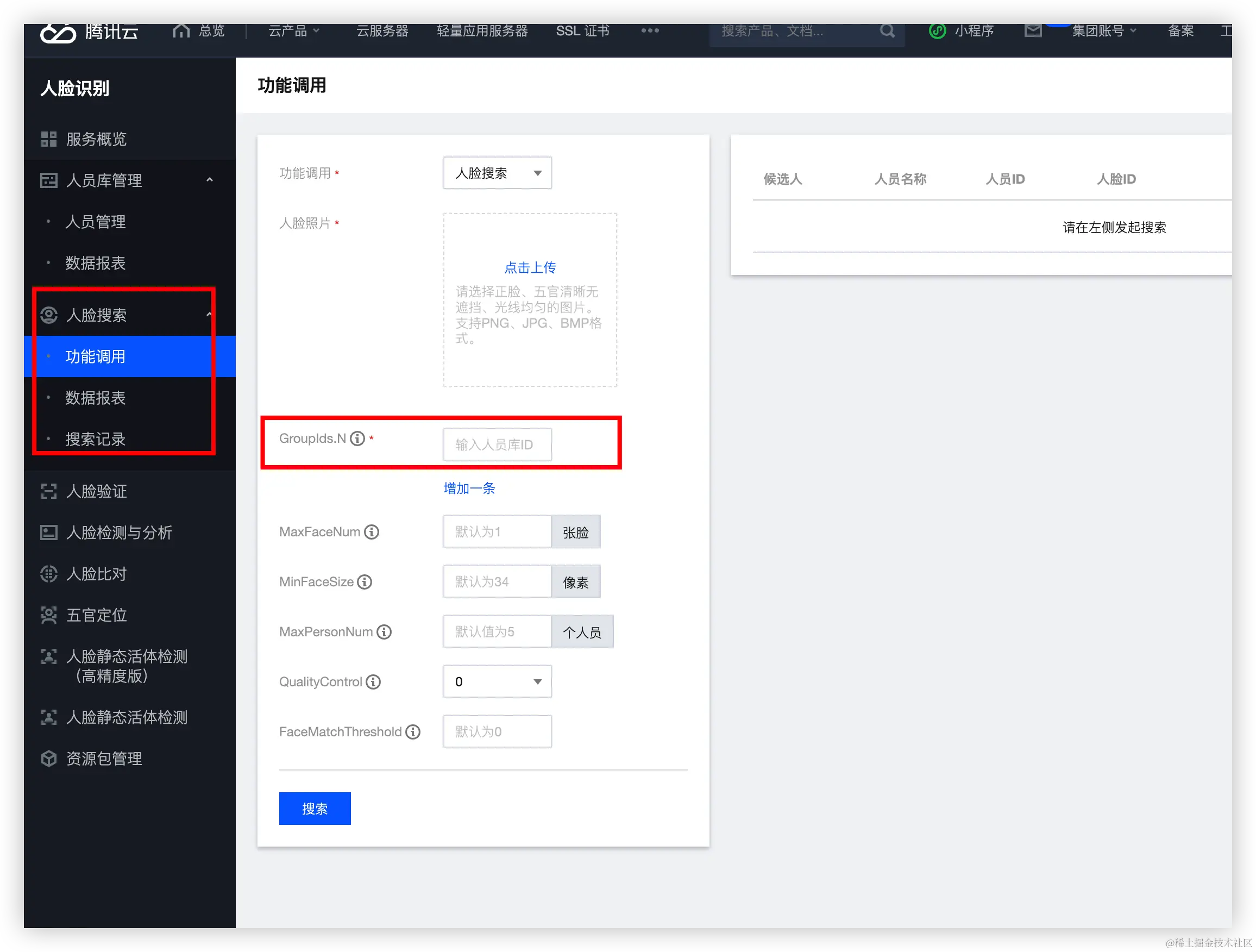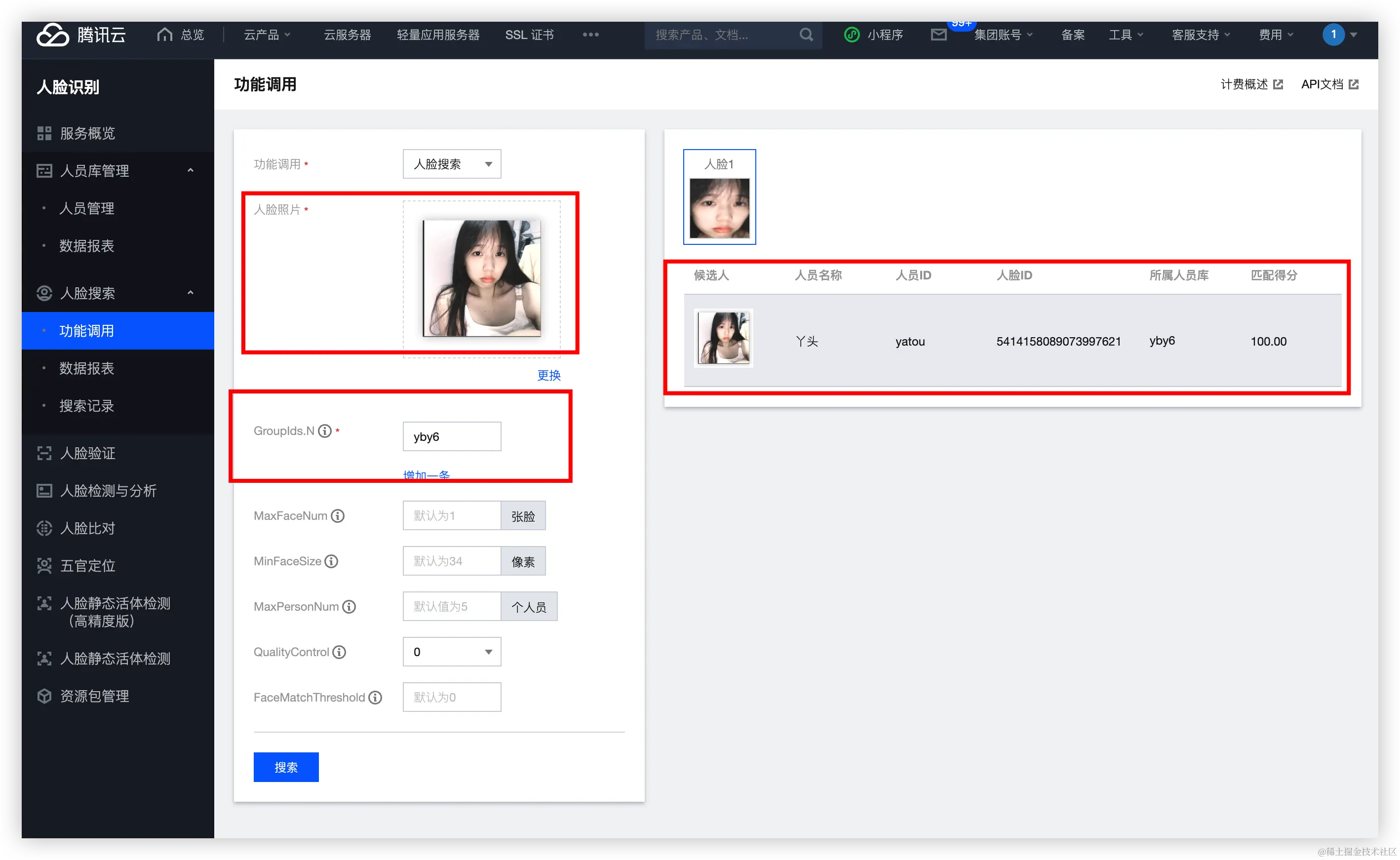 GroupIds 是希望搜索的人员库列表 刚刚我们创建了一个人员库 叫 yby6