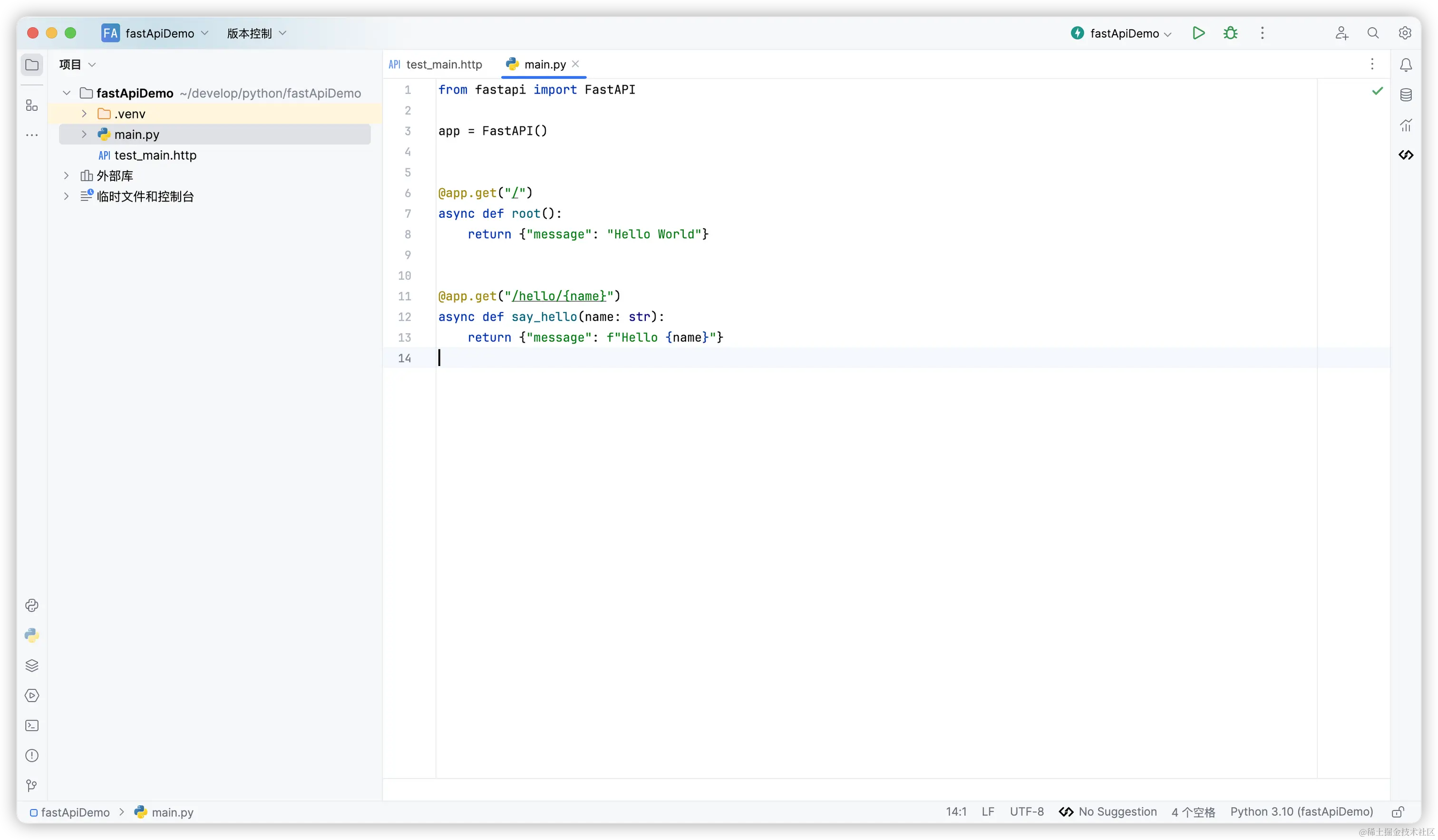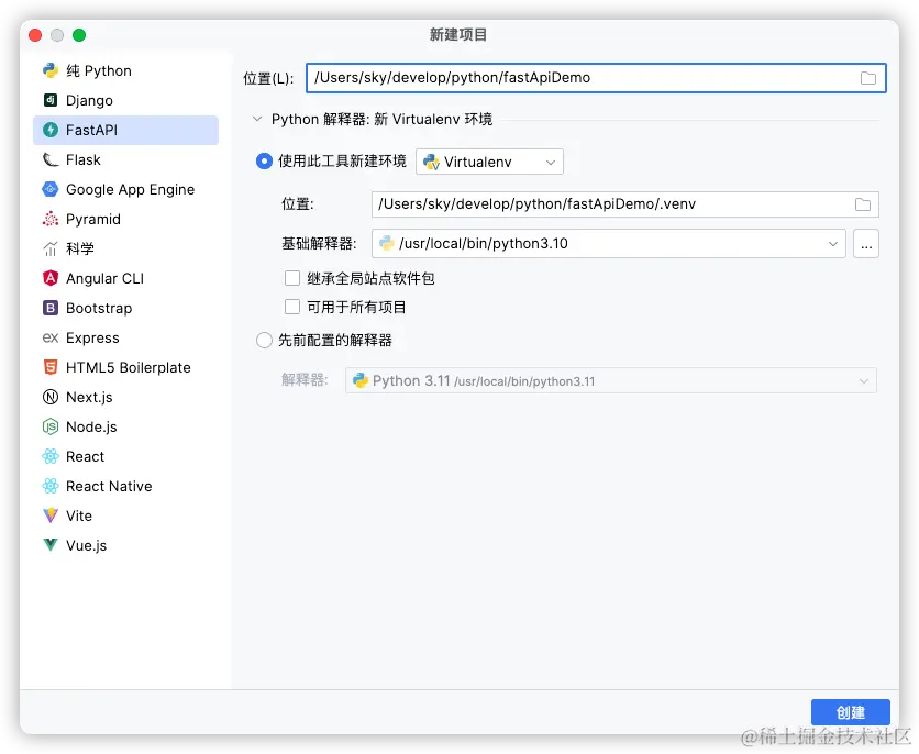 通过 Pycharm 新建项目, 我们可以快速搭建一个 FastAPI 的项目模型