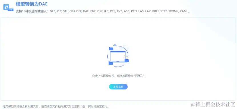 GLB转DAE网站也支持通过拖拽的方式,将文件进行上传。在资源管理器中,选择一份或多份模型相关文件,拖拽至GLB转DAE网站中的文件接收区域,即可完成3D模型文件的上传。