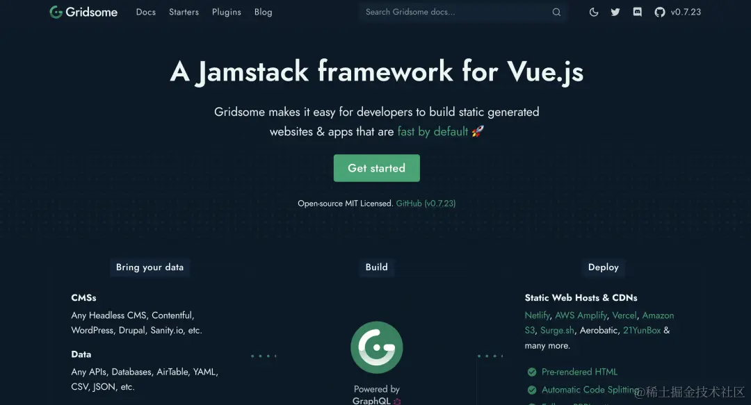 Gridsome 是一个基于 Vue.js 构建的 Jamstack 框架,它让开发人员可以轻松地构建静态生成的网站和应用程序,这些网站和应用程序天生速度快。