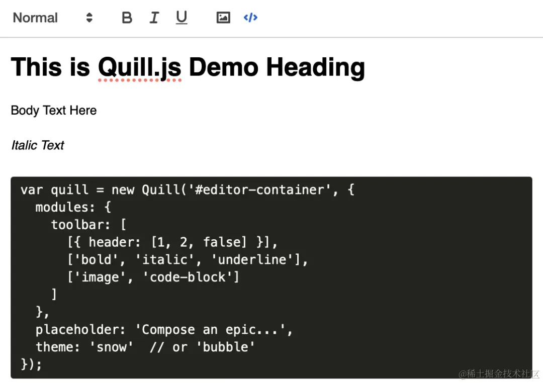 Quill.js 是一个具有跨平台和跨浏览器支持的富文本编辑器。凭借其可扩展架构和富有表现力的 API,可以完全自定义它以满足个性化的需求。
