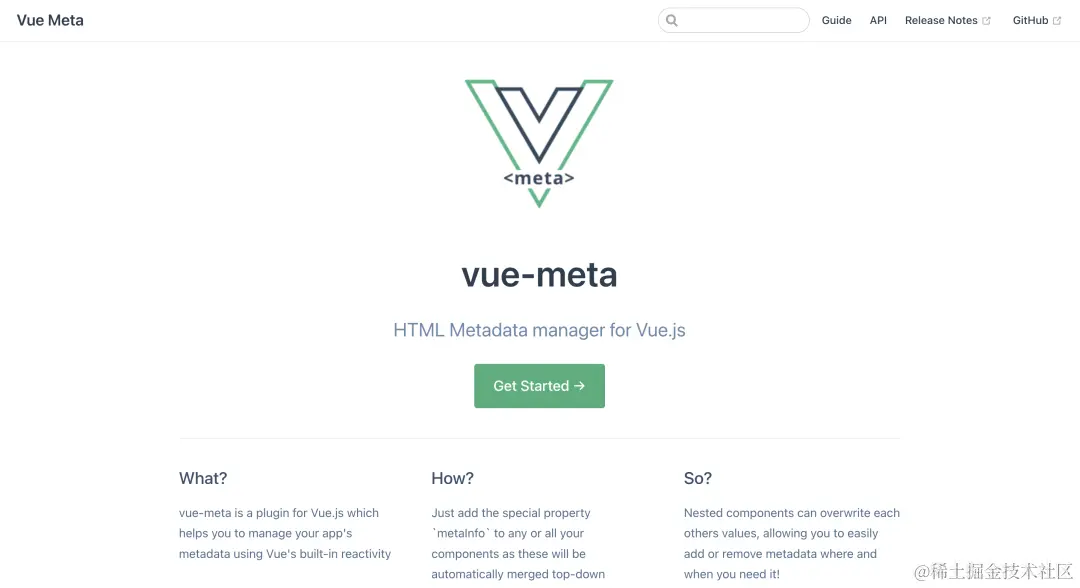 Vue-meta 是 Vue.js 的一个插件,它可以帮助你使用 SSR 支持管理 Vue.js 组件中的 HTML 元数据。Vue-meta 使用 Vue 的内置响应性使管理应用程序的元数据变得简单。