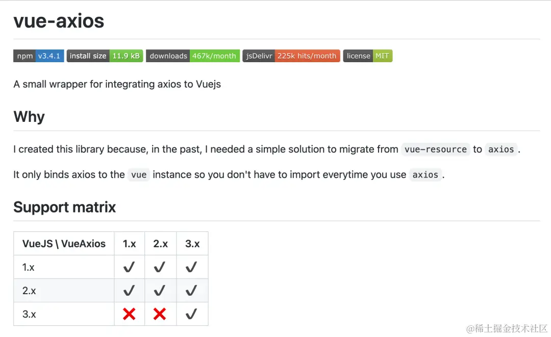 vue-axios 是一个将 axios 集成到 Vuejs 的小型库。