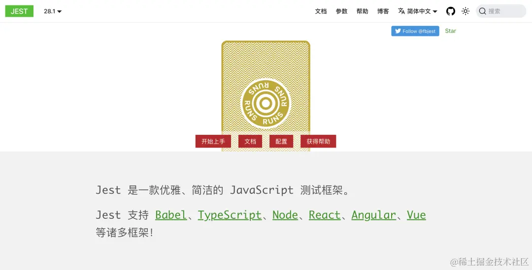Jest 是一个全面的 JavaScript 测试解决方案,专注于简洁明快。适用于大多数 JavaScript 项目。