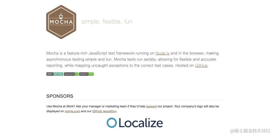 mocha是一个功能丰富的javascript测试框架,运行在node.js和浏览器中,使异步测试变得简单有趣。Mocha测试连续运行,允许灵活和准确的报告,同时将未捕获的异常映射到正确的测试用例。