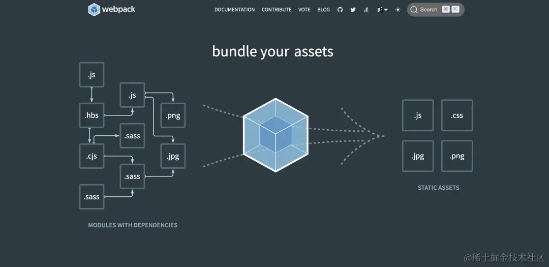 webpack 是一个用于现代JavaScript应用程序的静态模块打包工具。当 webpack 处理应用程序时,它会在内部构建一个依赖图(dependency graph),此依赖图对应映射到项目所需的每个模块,并生成一个或多个 bundle。