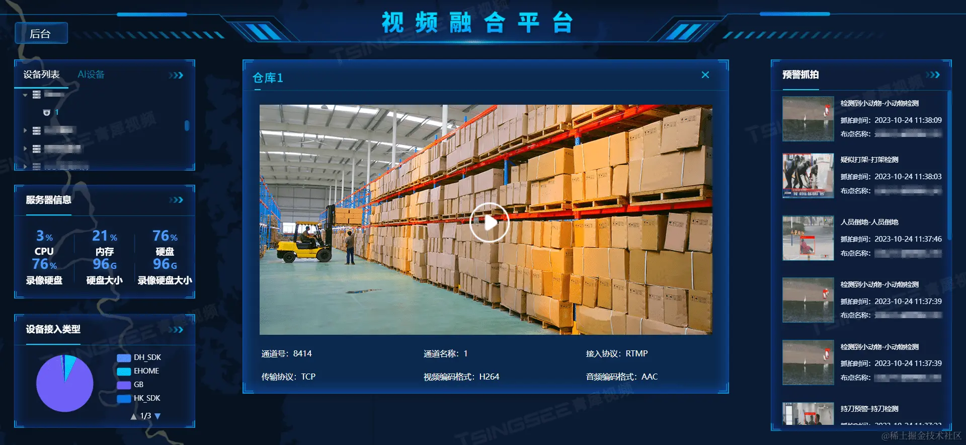 智能视频监控/视频云存储/集中存储/视频汇聚平台EasyCVR具备视频融合汇聚能力,作为安防视频监控综合管理平台,它支持多协议接入、多格式视频流分发,视频监控综合管理平台EasyCVR支持海量视频汇聚管理,可应用在多样化的场景上,包括城市“一网统管”建设、智慧工地风险预警、智慧工厂安全生产可视化监管、校园视频大数据综合管理等,感兴趣的用户可以前往演示平台进行体验或部署测试。