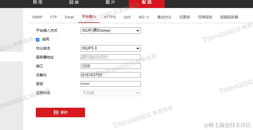 5)找出原因是对应端口没有开放导致的,重新开放对应端口,注册成功上线即可播放。