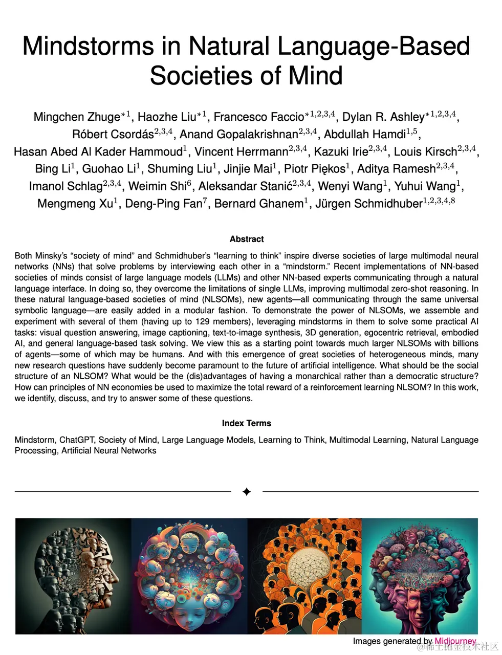 在 Jürgen 构想的这一社会中,所有的交流都是透明且易于解释的。他提到了一个被称作“Mindstorm”的概念,即当给定一个问题时,这个自然语言心智社会能够协同合作进行解答。