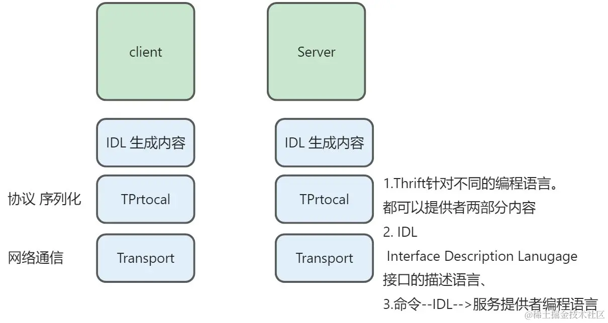 - Thrift命令 把IDL 语言 自动转换成 需要的编程语言