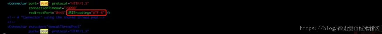 5、找到8080的位置,在后面添加URIEncoding="UTF-8"