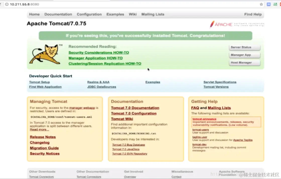 在浏览器地址栏输入Ip加:8080,如图所示即成功