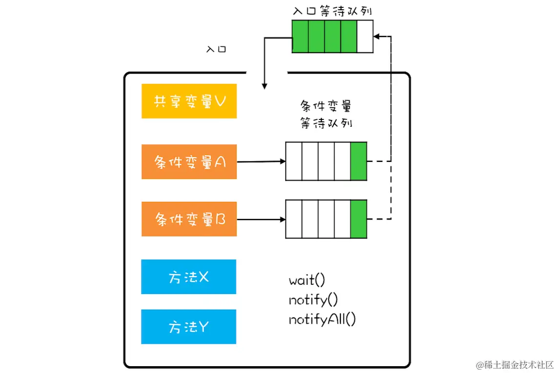 管程(Monitor)就是大家常说的监视器,下面是原理图: