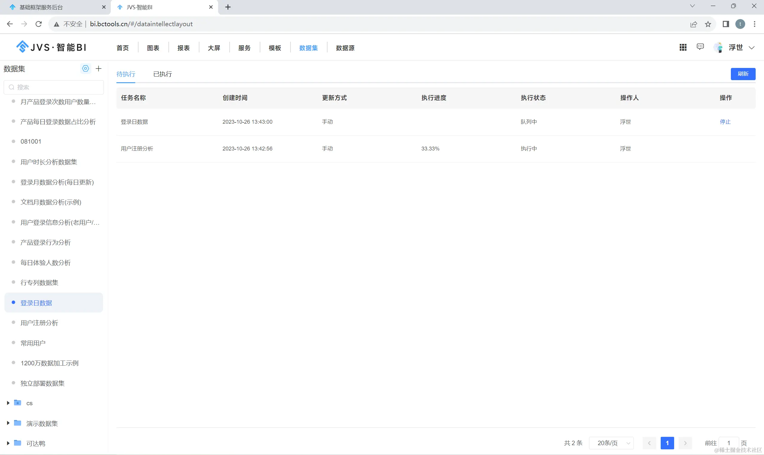 执行的过程我们也有对应的任务管理界面,系统对当前计算执行的任务,执行的进度都提供了界面化的管理,如下图所示