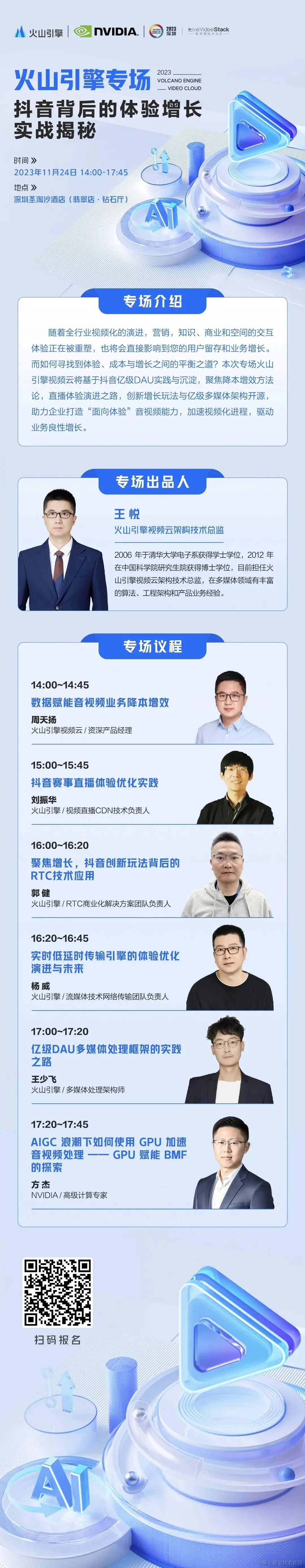 专场详细的演讲内容介绍见《「专题速递」数据驱动赋能、赛事直播优化、RTC技术、低延时传输引擎、多媒体处理框架、GPU加速》。