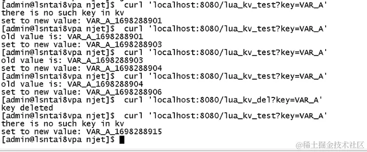 OpenNJet 提供了封装后的Lua kv store API,在Lua 中引用"njt.kv" Lua 库, 之后使用Lua 函数对kv store 进行操作,函数包括:db_kv_get, db_kv_set, db_kv_del。