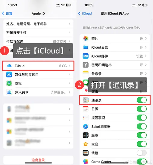 方法一:通过iCloud功能备份通讯录
