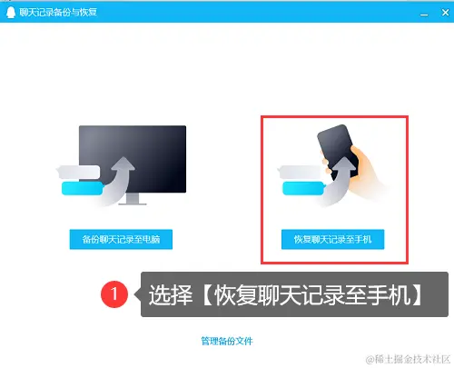 步骤3:在新的页面上,选择【恢复聊天记录至手机】。