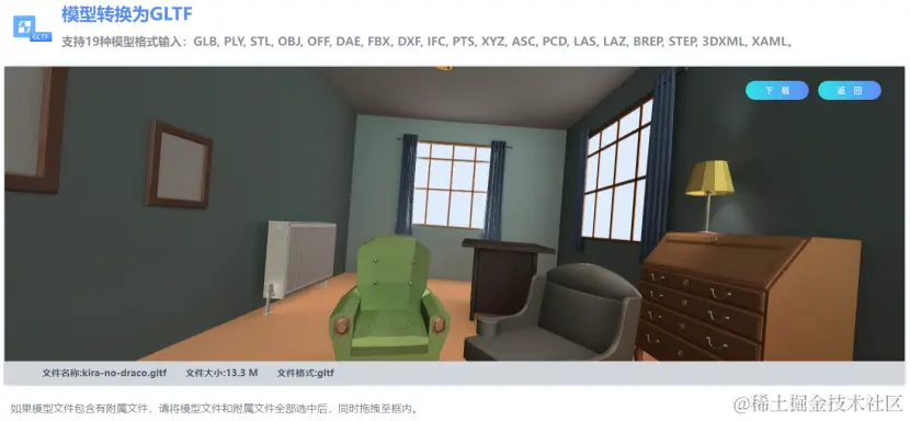 在等待一段时间后,网站完成了模型格式的转换,展示页面如下。