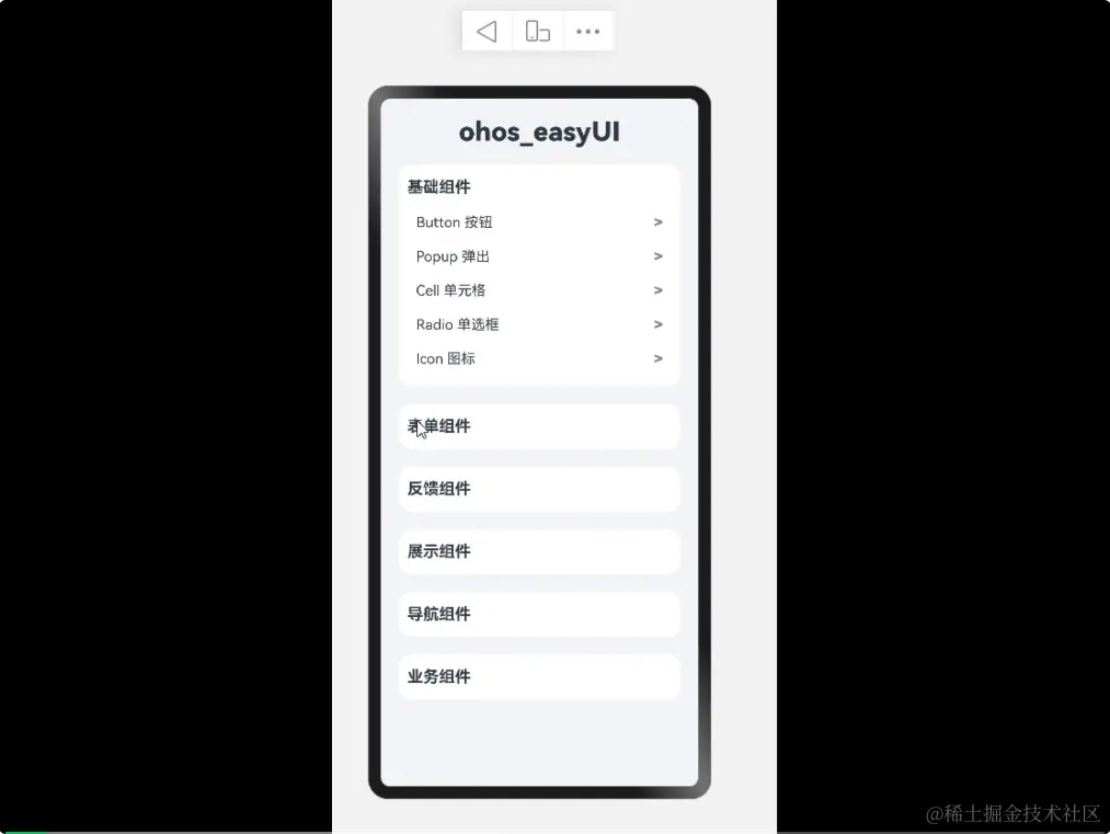 Easyui 是一套基于 ArkTS 语言开发的轻量、可靠的移动端组件库,它是对 OpenAtom OpenHarmony(以下简称“OpenHarmony”) ArkUI 进行深度定制的组件框架。Easyui 可扩展性较强,可以基于源码进行二次开发,修改原有组件以及新增部分组件,以满足具体项目的开发需求。该框架适用大部分 OpenHarmony 应用的开发 ,能够更加完善 OpenHarmony 的应用开发能力,使我们的应用开发更简单。