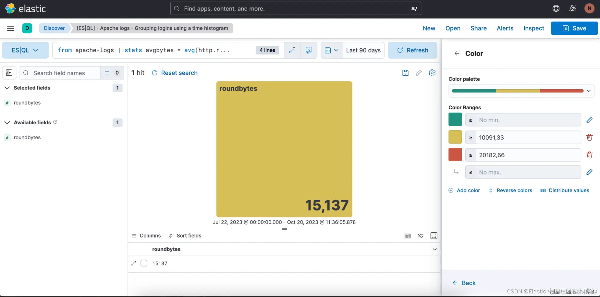 来自 apache-logs:这将从名为 “apache-logs” 的索引发起查询。 该索引包含与 Apache Web 服务器流量相关的日志条目。