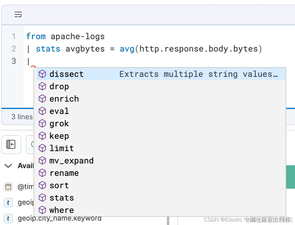 ES|QL 是 Elastic 推进数据分析和探索的最新创新。 这不仅仅是展示数据; 它是为了使其易于理解、可操作且具有视觉吸引力。 ES|QL 由快速、分布式和专用查询引擎提供支持,设计为一种新的管道语言,并包含统一的数据探索体验,可以满足站点可靠性工程师(site reliability engineer - SRE)、DevOps、威胁猎人和其他类型的分析师的挑战。。