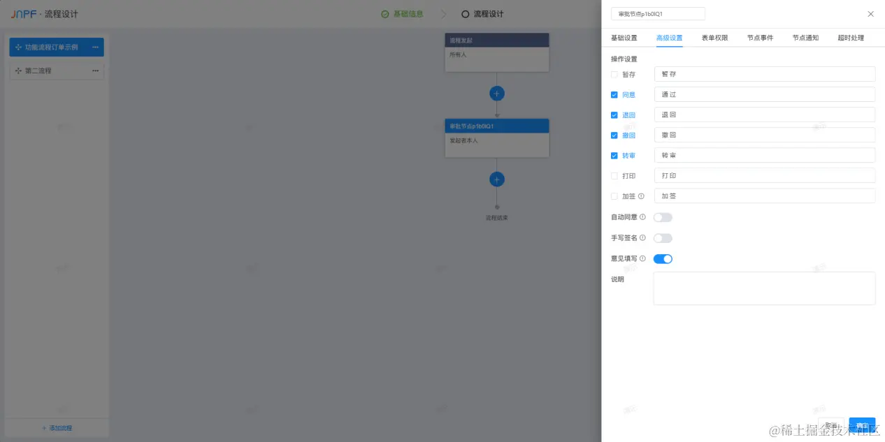 强大流程定义功能(节点审批、子流程、条件分支、选择分支、并分支、定时器等),业务逻辑简单好理解、业务流程梳理快捷明了,同时支持一表单多流程的设置。