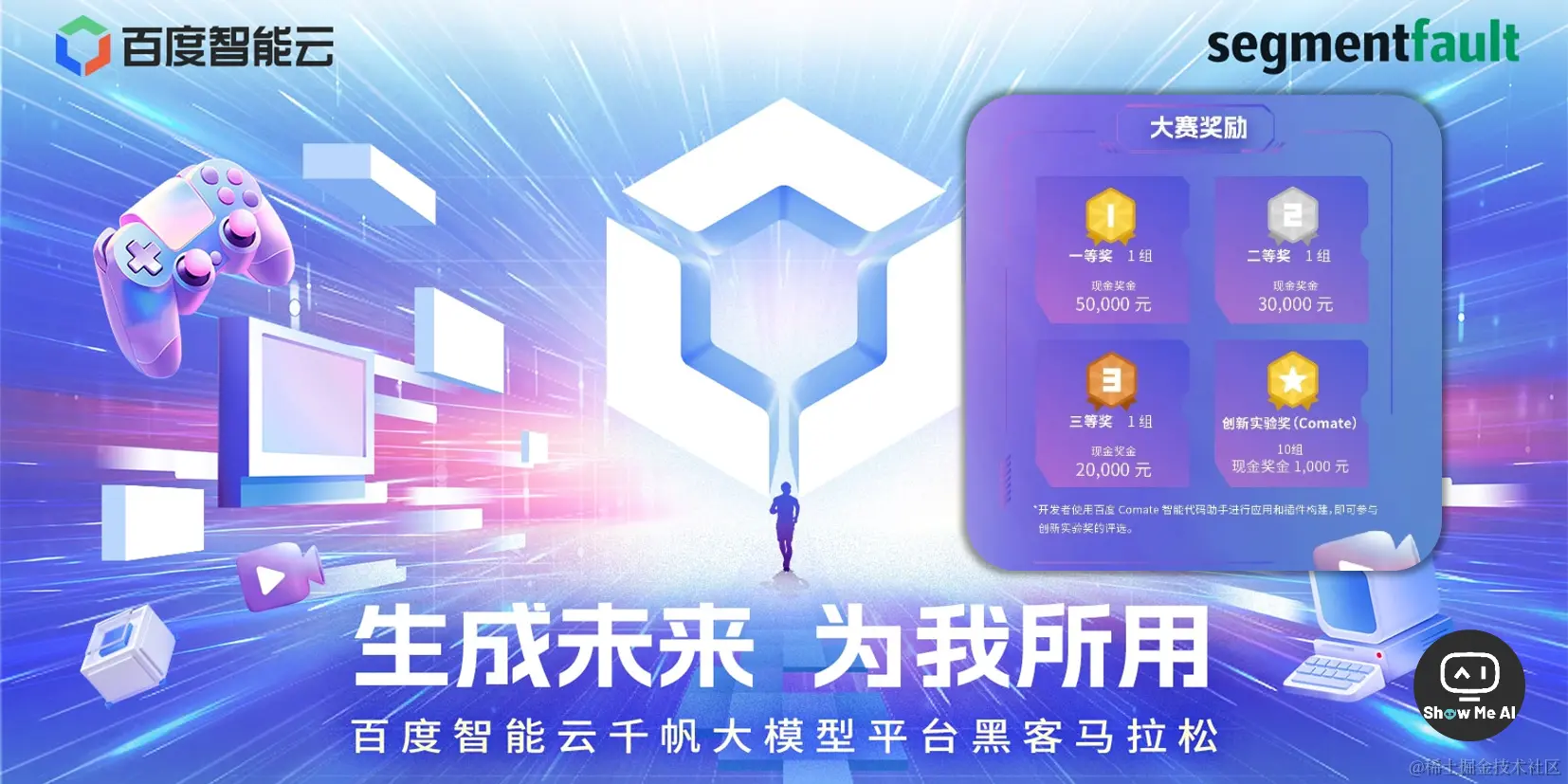 百度智能云携手 SegmentFault 思否,面向广大开发者打造了一场生成未来的黑客马拉松挑战赛,鼓励开发者使用平台提供的国内外主流大模型、先进的生成式AI开发工具链等,构建新型应用或插件,做到让生成式 AI真正「为我所用」,解决实际问题。