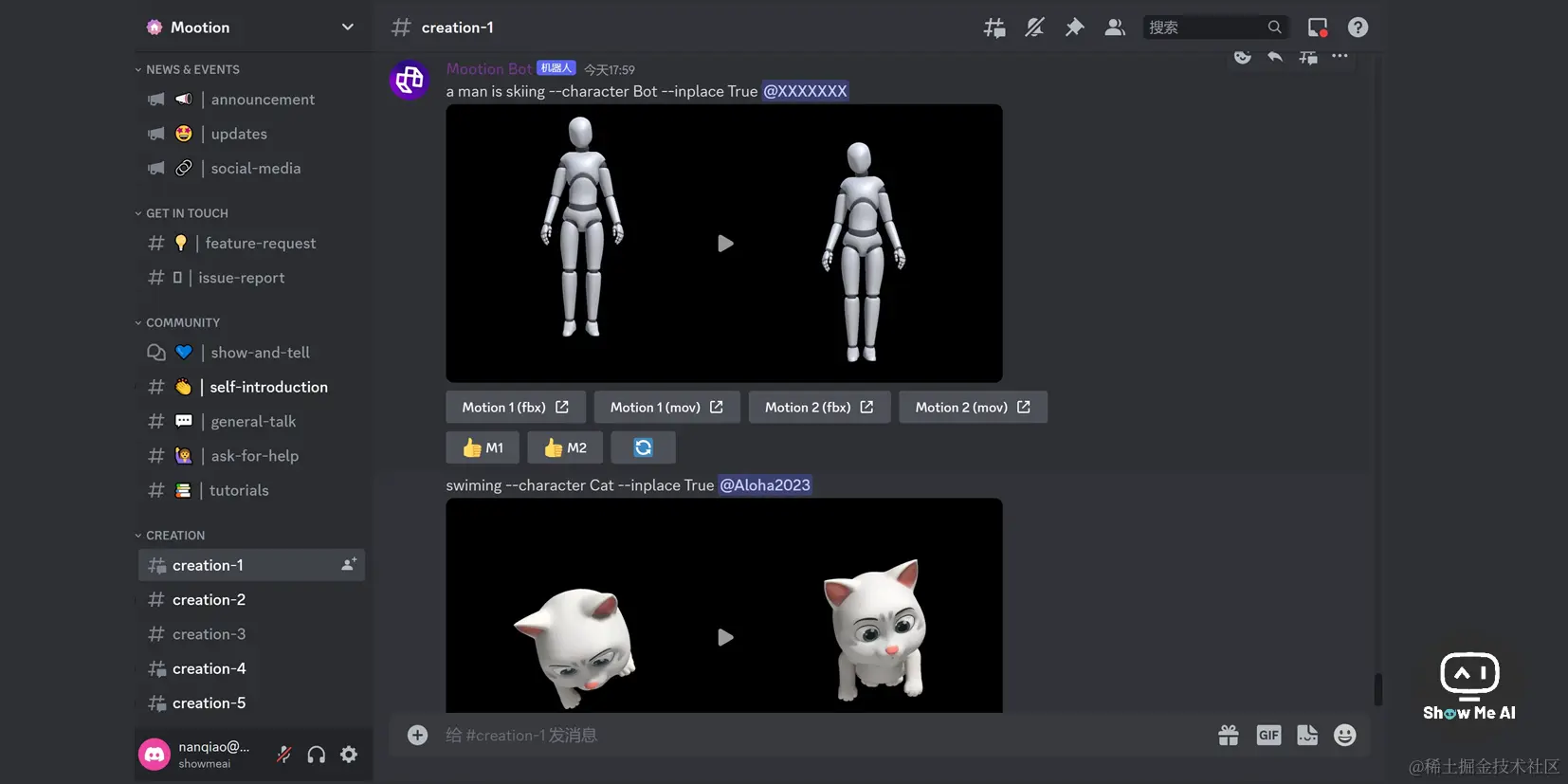 从官网进入官方 Discord 频道,选择 Creation 开头的频道,就可以开始3D创作啦