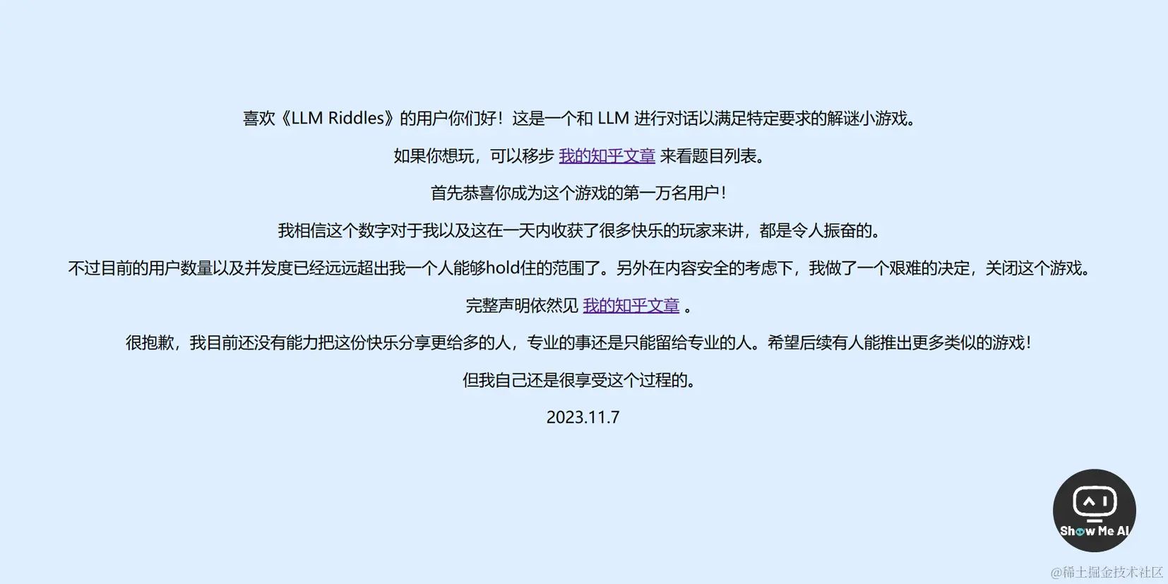 社区的小伙伴们这两天都在玩一款「LLM Riddles (大模型解谜)」的游戏,需要模仿大模型的思考方式,和模型对话使得输出符合题目,通过之后则闯入下一关!大家正玩得不亦乐乎,作者却宣布受限于计算资源等原因,关闭了这款游戏。