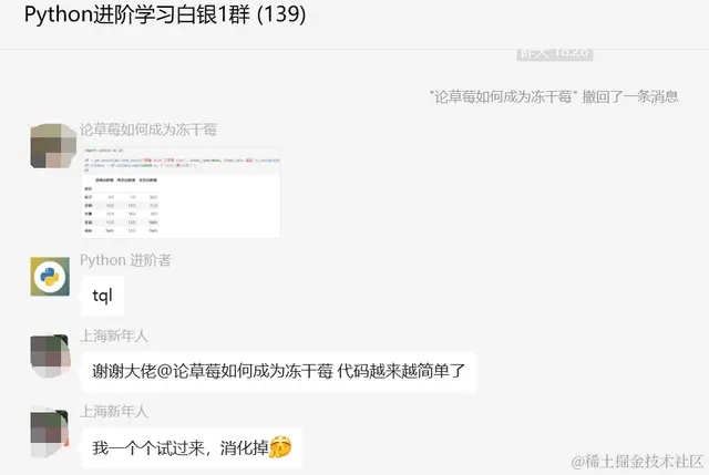 最后感谢粉丝【上海新年人】提问,感谢【猫药师Kelly】、【瑜亮老师】、【论草莓如何成为冻干莓】给出的思路和代码解析,感谢【懒人在思考】等人参与学习交流。