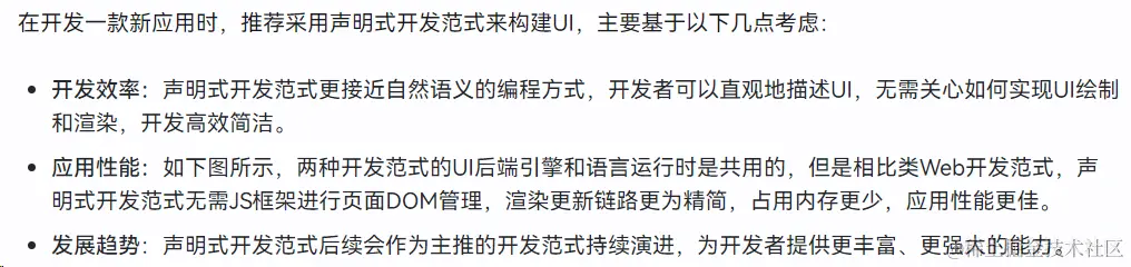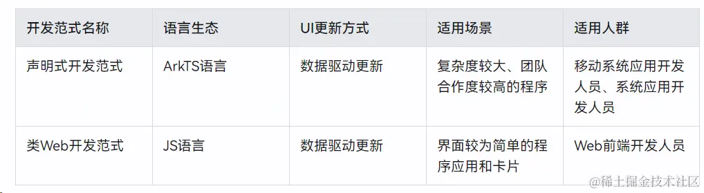 虽然ArkUI框架也就是方舟开发框架(HarmonyOS提供了一套UI开发框架)针对不同目的和技术背景的开发者提供了两种开发范式,基于ArkTS的声明式开发范式和类Web开发范式,但是仍然建议你第一选择,一定要选择声明式开发范式的ArkTs语言。