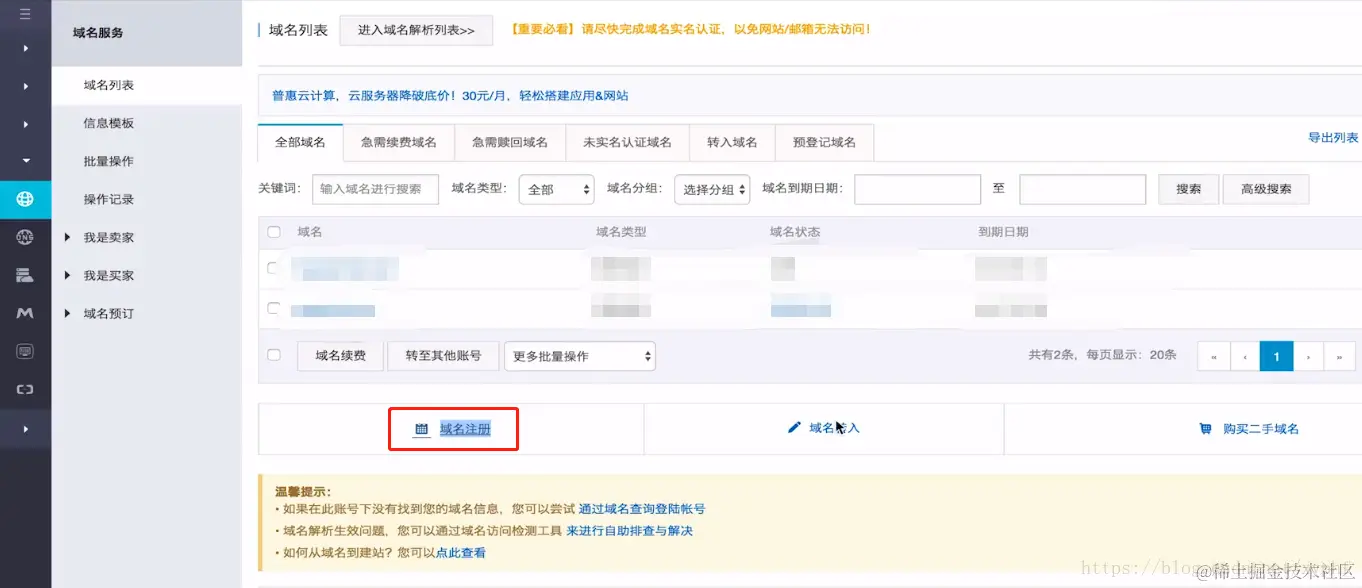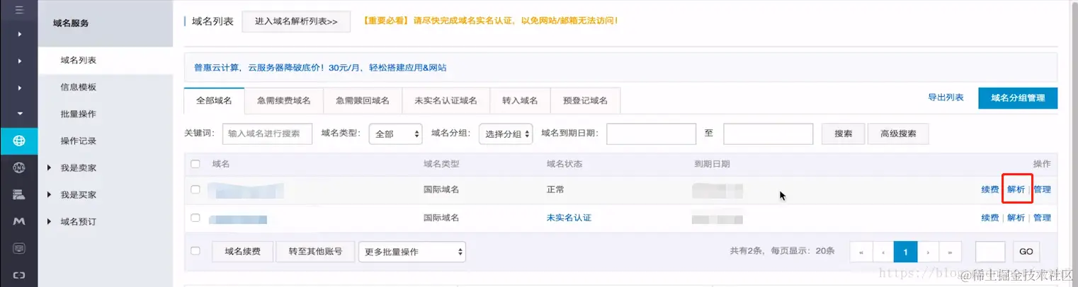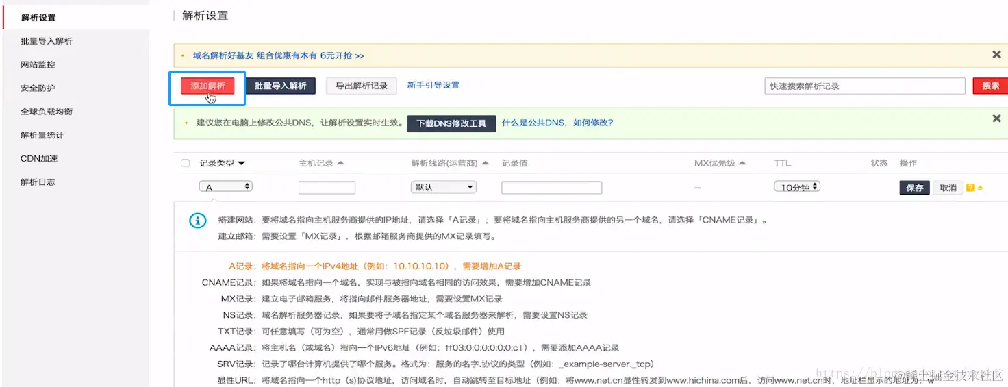 【主机记录】里面都是二级域名,我们只有关注A类型的就可以了,记录值就输入我们云服务器的公网IP就可以了,然后我们会通过nginx对ServerName进行判断,然后通过nginx进行一个服务转发