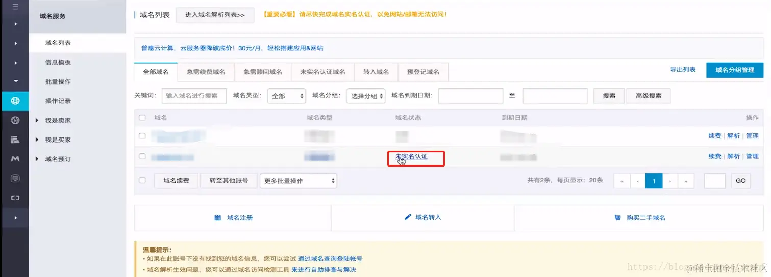 点击【未实名认证】去实名认证,阿里云的客服会给你打电话核实,上传身份证以及个人和阿里云幕布的相片等就可以了。