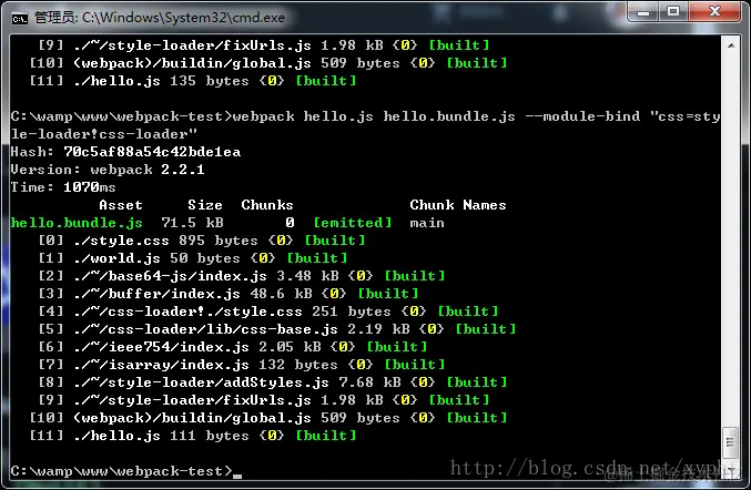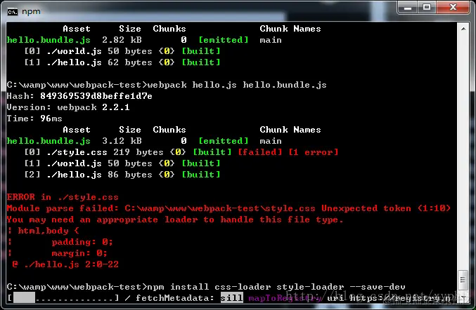 webpack hello.js hello.bundle.js --module-bind "css=style-loader!css-loader" --progress --display-reasons