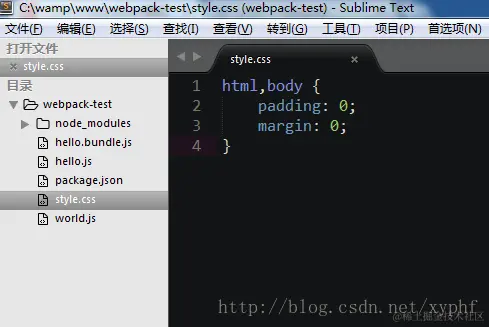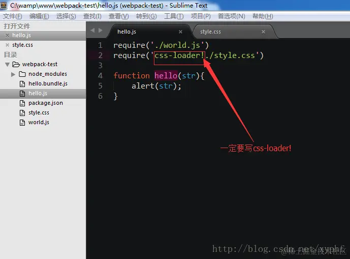 【注意】”css=style-loader!css-loader”外面是双引号,单引号可能会报错