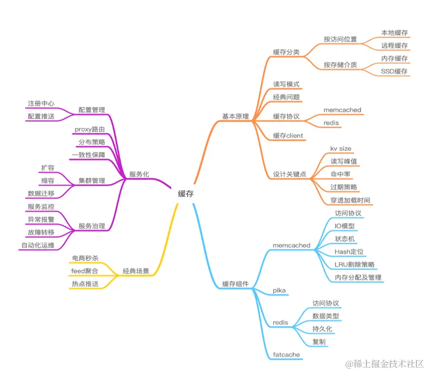 作为互联网公司,只要有直接面对用户的业务,要想持续确保系统的访问性能和可用性,都需要使用缓存,尤其是在产品性能中,缓存尤为重要,缓存会提高整体的性能使用,提高产品的用户体验及用户容量,常见的缓存知识如下图。在日常工作中,我们常使用的缓存组件是redis。