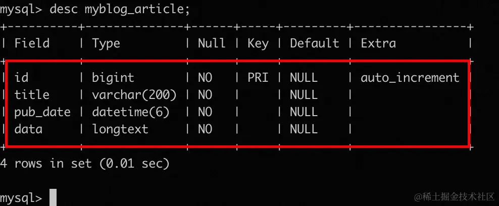 很明显django数据库中多个一张叫myblog_article的表,看下这个表