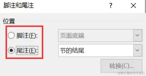 3.在脚注管理器中,选择要转换的脚注,点击 【转换】 按钮,将脚注转换为尾注。