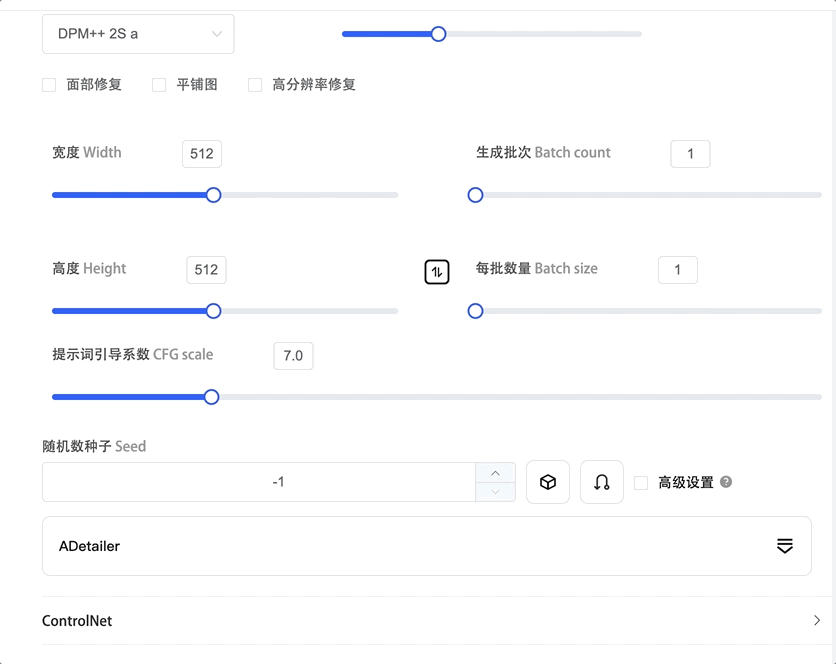 当勾选面部修复、高分辨率修复后,下面一些参数自动就会生成,无需再一一设置