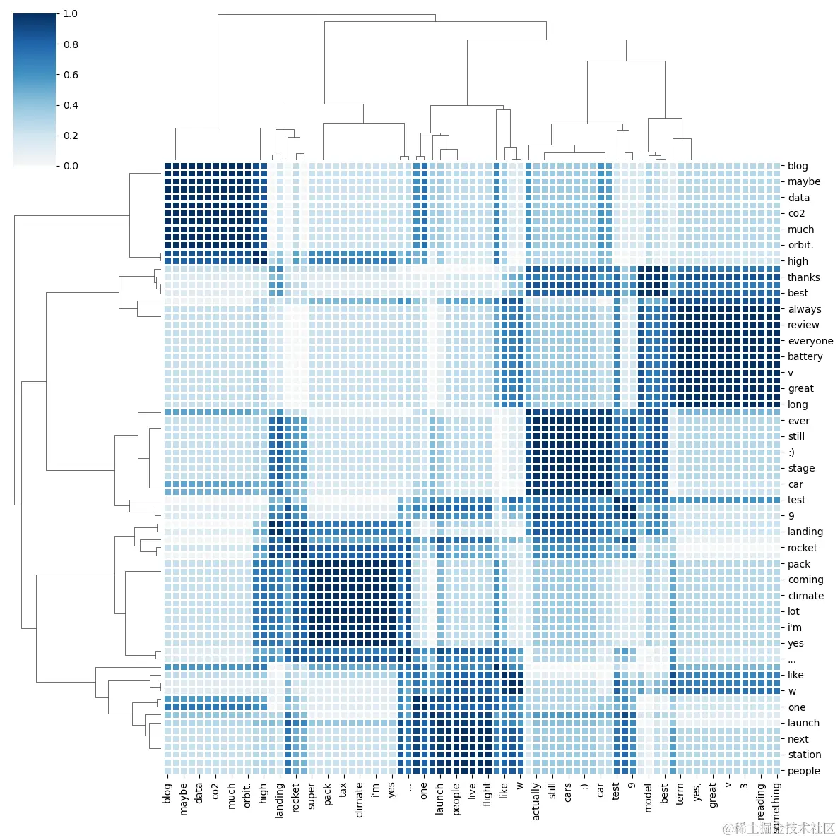 显示不同单词之间的相关性