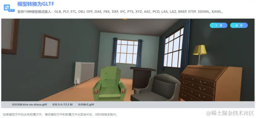 在等待一段时间后,网站完成了模型格式的转换,展示页面如下。