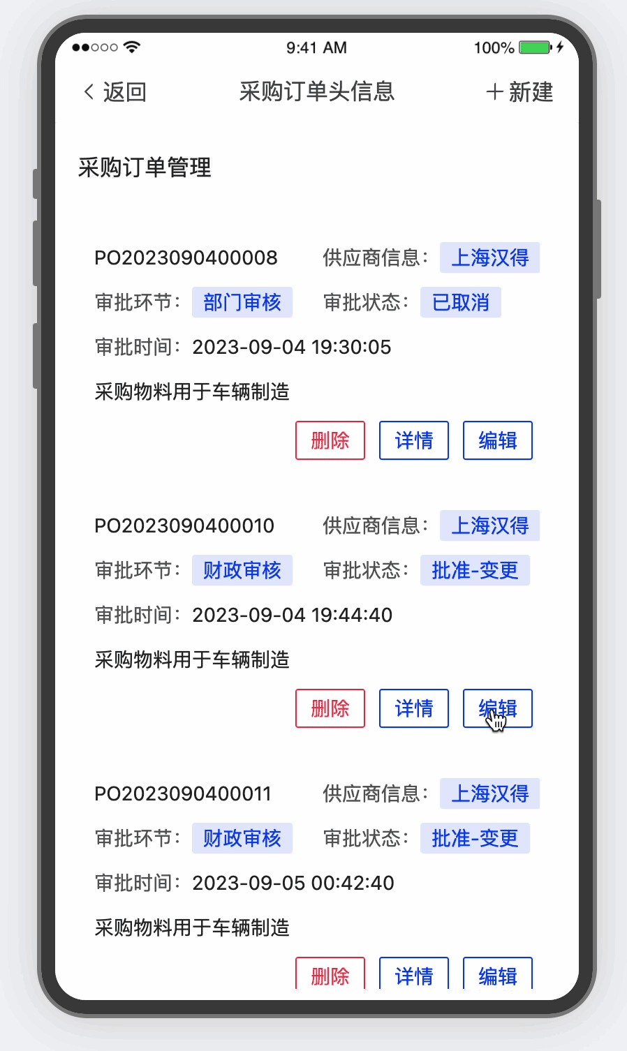 通过移动端的列表页可便捷地在移动端完成数据的查询,若您想要完成数据的新建、编辑、查看详情的操作,我们也支持在创建列表模板时,同时生成绑定同一数据源的表单页面,即可实现从移动端列表页跳转至表单页完成数据的新建、编辑、查看详情的操作。