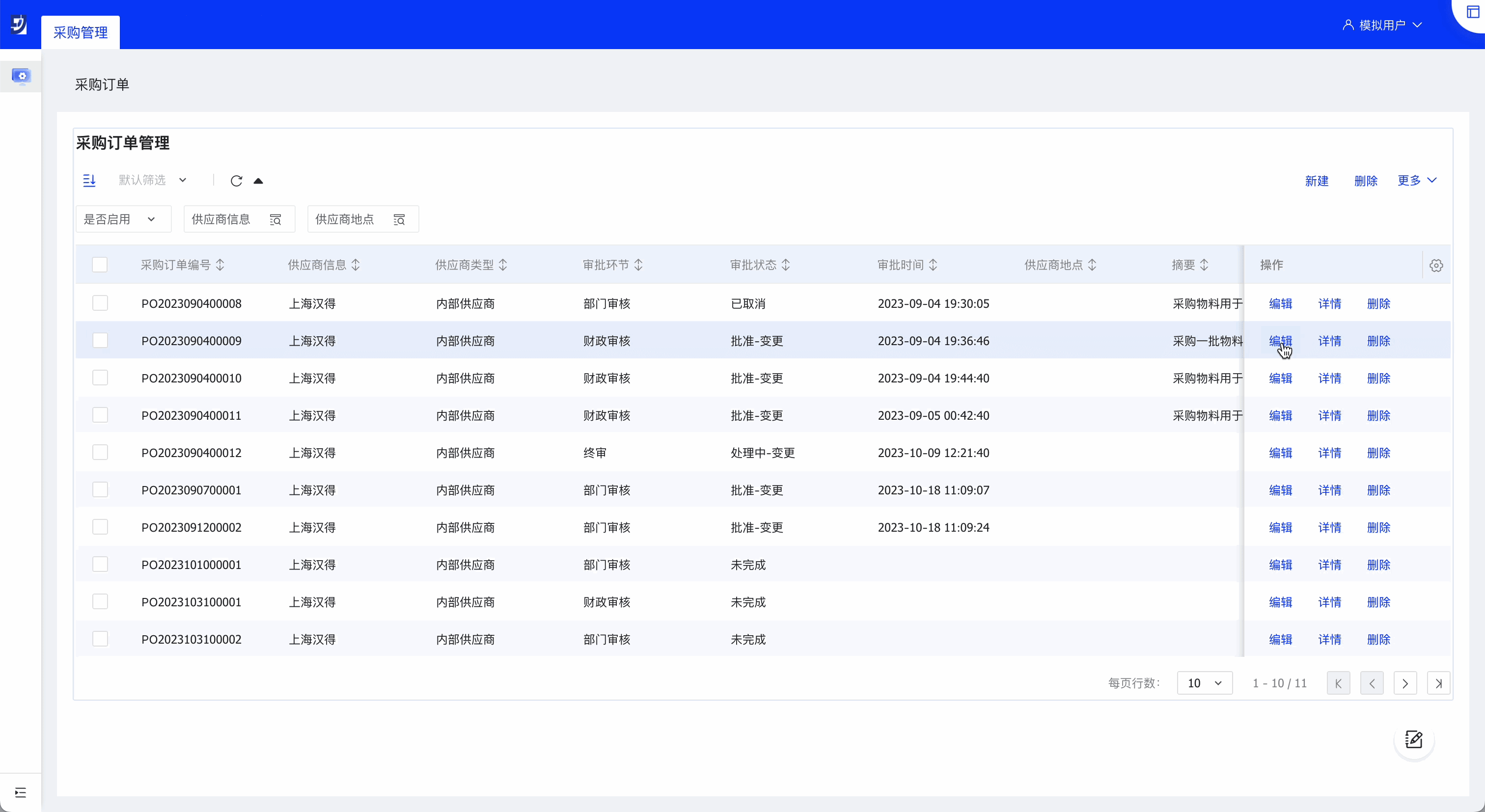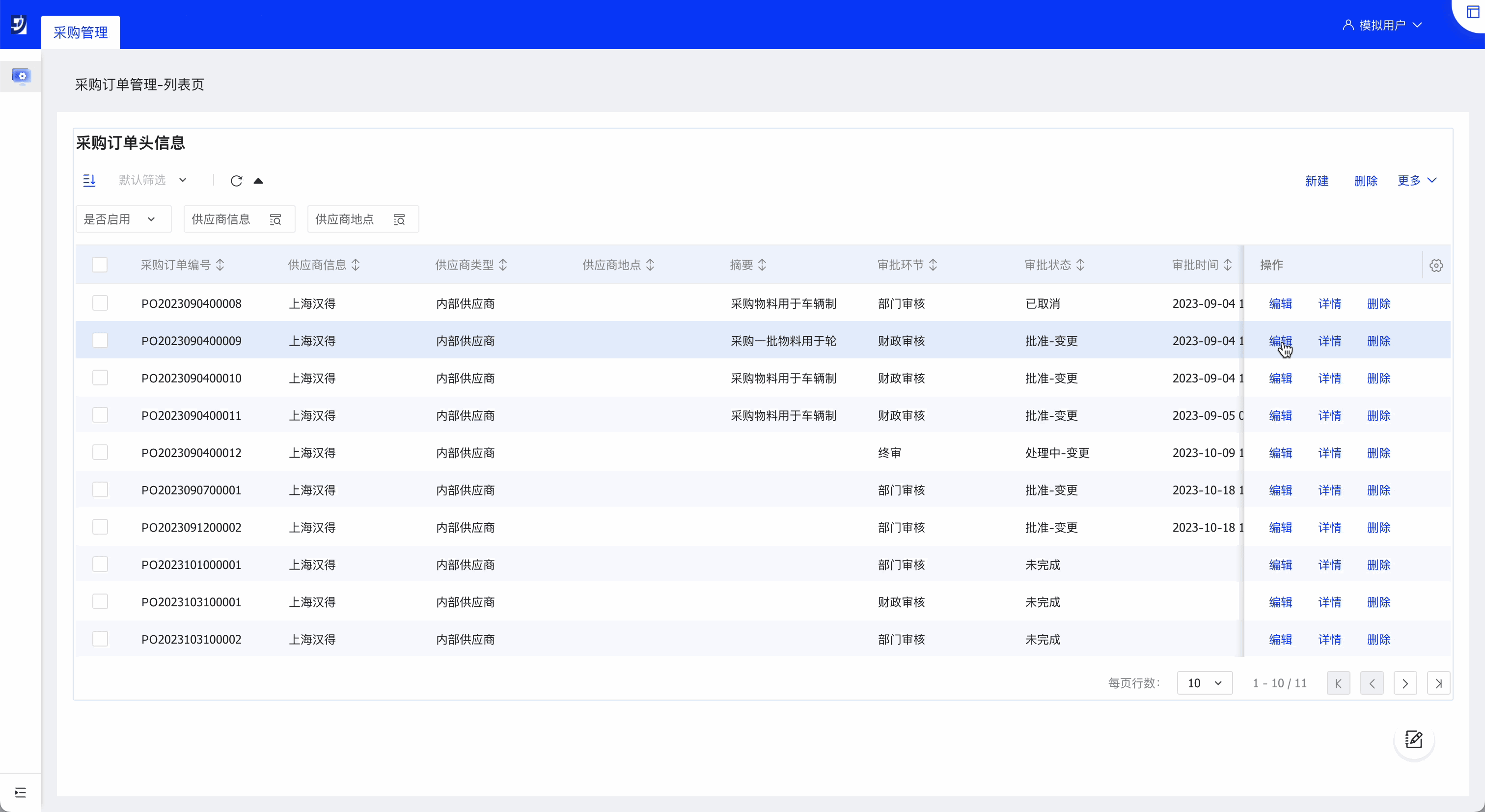 列表页模板适用于单表的数据源,比如采购订单管理列表。
